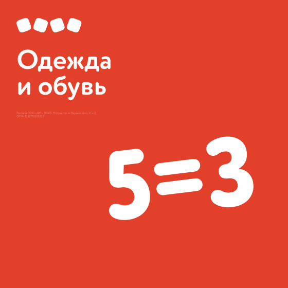 С 9 по 12 апреля 2026 года в Детском мире действует акция 5=3 на одежду и обувь. При покупке пяти товаров из ассортимента, участвующего в акции, вы получаете два из них с наименьшей ценой в подарок.